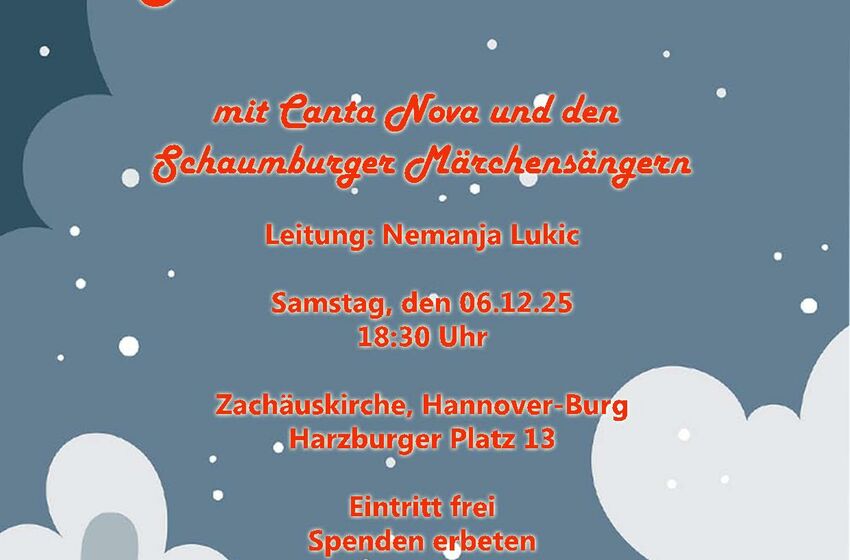 Am Nikolaustag laden das Chorensemble Canta Nova aus Hannover und die traditionsreichen Schaumburger Märchensänger aus Bückeburg zu einem festlichen Adventskonzert in die Zachäuskirche ein. Unter ...